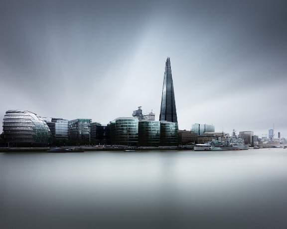 An example of an architectural long exposure photograph in color, combined with typical long exposure seascape elements as the water of the river Thames that is smooth without any texture and looks like ice. The sky has the typical streaks of clouds that are long and soft with not too much contrast, they’re almost transparent clouds: the so-called ‘ethereal look’ that I always try to include in my long exposure photographs. Chances on capturing this ethereal look  of both water but more specifically the sky, are higher when the exposure time is longer. Shot with a 24mm tilt shift lens. Technical info: f/6.3 | ISO 200 | 6 minutes  and 25s exposure time | 10 stops ND filter.