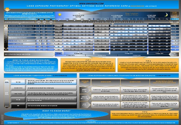 This long exposure photography tutorial is targeted at several levels: beginners will find a complete guide and an extensive step by step explanation what long exposure photography is, what you need and how to do it yourself. The more experienced long exposure photographer may find information in this tutorial that isn’t available anywhere else, simply because I’m writing out of my own extensive experience as a long exposure photographer with a no holds barred attitude. If you’re already familiar with long exposure photography and just need a refresher course or just compact and handy information, you may want to scroll down the page, to the section with the recently released Long Exposure Photography Quick Reference Card with optimal settings. The first long exposure quick reference card of its kind, which is actually an infographic and more than just a table with exposure times, and contains all relevant and important information on long exposure photography on just one printable page. Scroll down the page to go directly to the quick reference card and download the high resolution version, or have a look at this article.