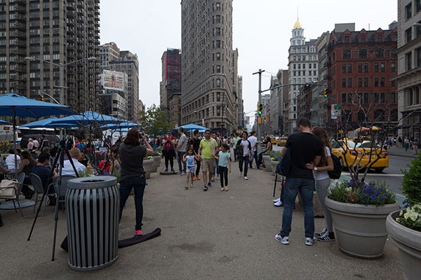 This photo is taken in New York City near the Flatiron building. An area that’s usually very crowded. There are several ways of using long exposure photography on a scene of this: either with a shorter exposure or a longer exposure. I chose to go with a long exposure since there were many people who were quite static or simply sitting still in this frame. To capture people in a way that increases the chances of people disappearing or transforming them into ghosts, where they are more static elements, it’s recommended to extend the exposure time to more extreme long exposure times of 5 minutes or longer. But even better in locations such as these is to go over 15 minutes of exposure time, even though there’s still no guarantee the place would look empty. Just have a look at the after photo where I used an exposure time of more than 5 minutes.