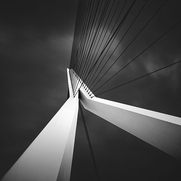 This is an example of an architectural long exposure photograph with the camera pointed to the sky and tilted in a position of around 45 degrees. It is the Erasmus Bridge in Rotterdam. The stronger the tilt and the more the camera has a perpendicular position to the horizon, the stronger the streaks of clouds effect in the sky. The exposure time in this one can be considered short: only 30 seconds. You can see that some clouds are starting to form streaks of clouds while a few others are still recognizable as a normal cloud shape but more blurry and with less details. The clouds were moving relatively fast and since the camera is pointed to the sky instead of straightforward the clouds appear to have more movement and speed as well, which would be different if you would point the camera straight forward. Short, medium or long exposure, the result is largely depending on the velocity of the clouds and what is good or acceptable is all very relative. Even though I prefer longer exposures, I like the result of this. This photo was part of a series that received first place at the International Photography Awards 2011