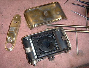 Why did you start rebuilding folder cameras? A. Like many things, that's a long but somewhat uncomplicated story. Many moons ago I got interested in hunting and guns, but being just out of college and newly married, I couldn't afford the guns I really wanted. So I decided to make my own; eventually drifting into muzzleloaders. At that point I was creating all my guns from scratch.... and making enough of them that I began to have clients in North America, Europe, and Australia/New Zealand as well. I became one of the primary sources for 16 - 17th century firearms. What does that have to do with cameras, you ask? Well, about the same could be said for cameras. I couldn't afford medium format cameras so I had to make do with old folders. Following my adage that "what one can screw together, I can screw apart......... and put back together again!" I guess my years of gunsmithing was a natural when I decided to "play with medium format folders." Actually, I've been a "photographer" much longer than a hunter and gunsmith. I really got started restoring cameras about 6 years ago when a good friend of mine, Frank Frazetta, asked me to fix his cameras. He's sort of a collector and user so he'd somehow muck up a camera every now and then. |