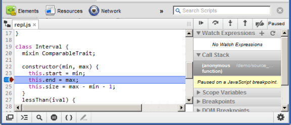 Demo: Write ES6, debug it, view source mapping in actionThe only JavaScript compiler/minifier that has support, at the moment, for source map generation is the Closure compiler. (I'll explain how to use it later.) Once you've combined and minified your JavaScript, alongside it will exist a sourcemap file. Currently, the Closure compiler doesn't add the special comment at the end that is required to signify to a browsers dev tools that a source map is available:
