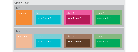 Each column family can be compared to a container of rows in an RDBMS table where the key identifies the row and the row consists of multiple columns. The difference is that various rows do not have to have the same columns, and columns can be added to any row at any time without having to add it to other rows.