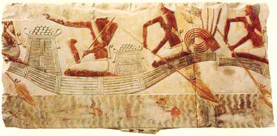 like those drawn in red on buff-colored pottery from Hieraconpolis, a