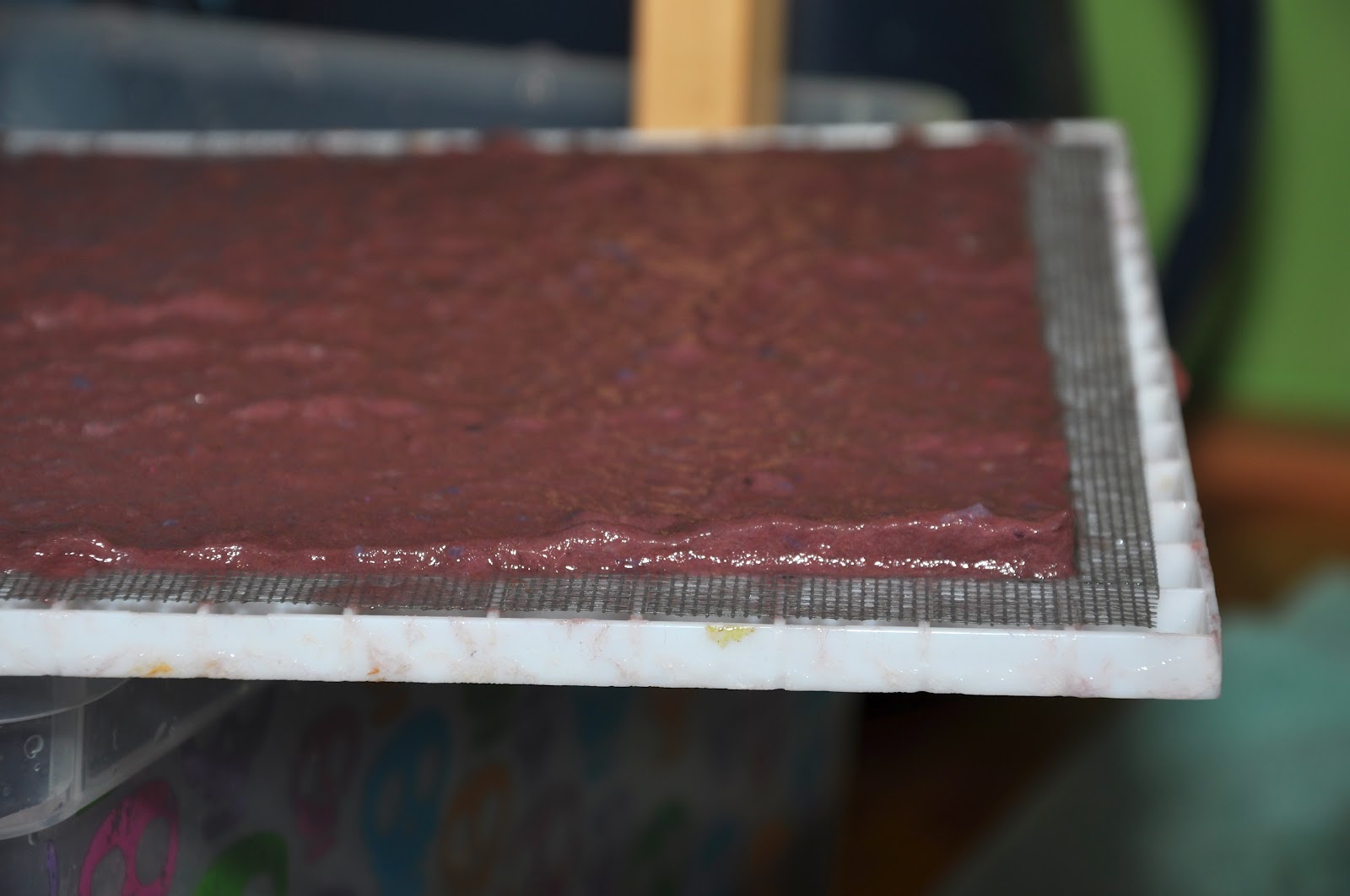 Continue doing this until the paper is too thin to remove from the screen. To dry your paper you can keep piling the towels and papers on top of each other.