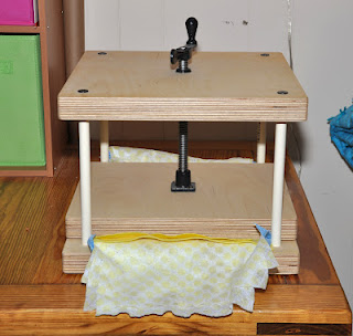 press. If you don't own a press you can get either large books or a large piece of wood, and place them on top of your papers, and then some bricks or cinder blocks.