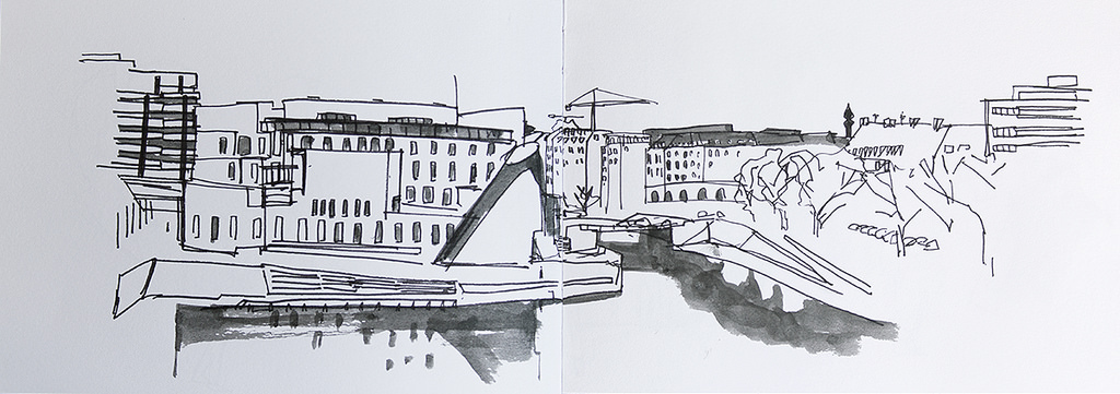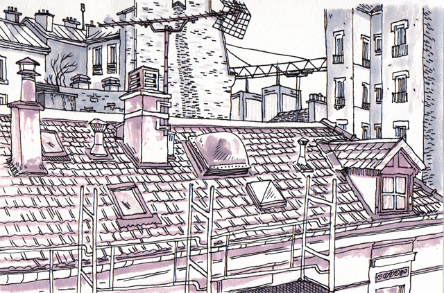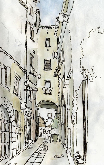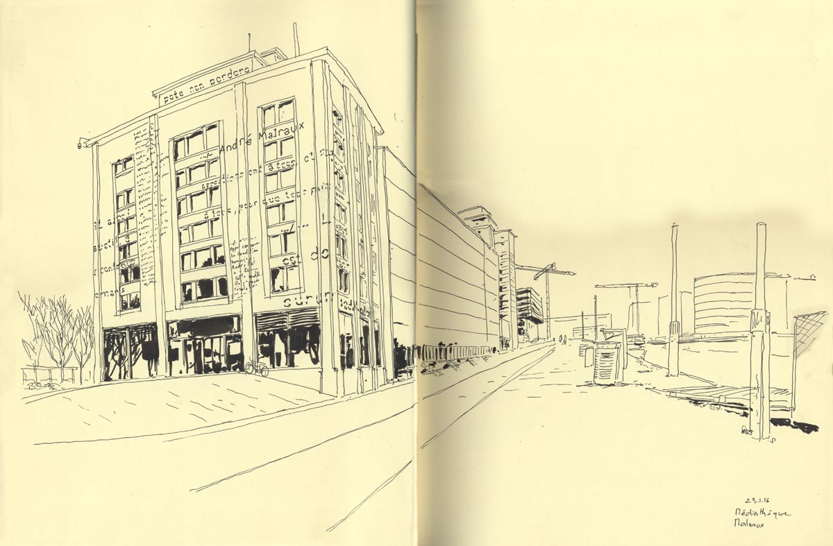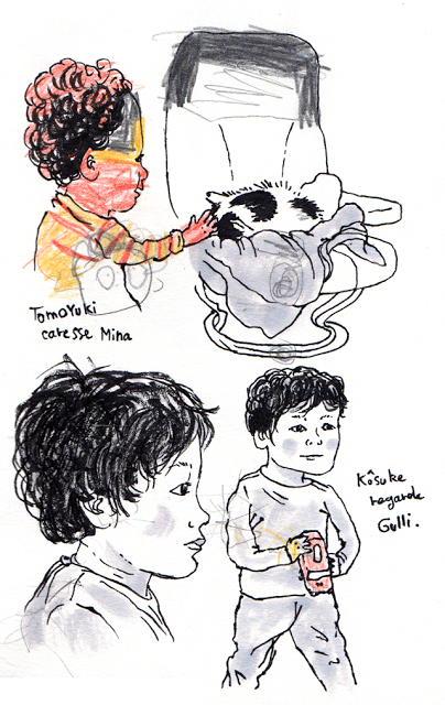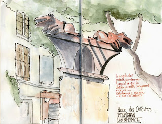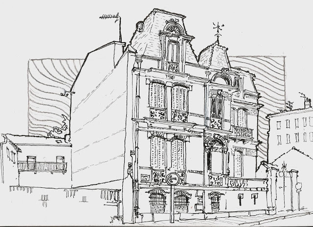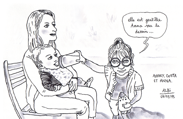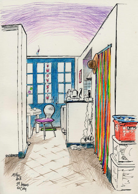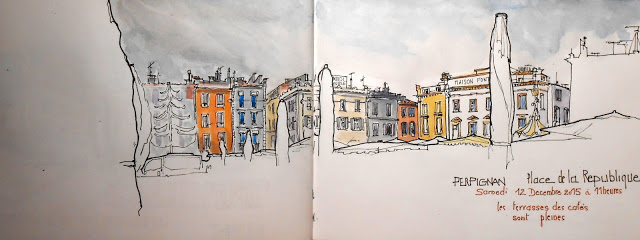 2 steps from home or perhaps 10, the Old Hospital with this orange plaster that detaches the other buildings making it warm. For the record, the Mummy and the little girl received a Christmas book and a nice box of pencils, which can be seen at the window, draw came in my company.