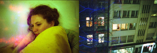 These images were taken on a roll of film that was in a camera that had orange juice spilled on it. It soaked in the orange juice for days and then was rolled back into it’s canister. The film was stretched, scratched, contaminated, and even ripped in a few spots. Although strange, they are rather interesting.