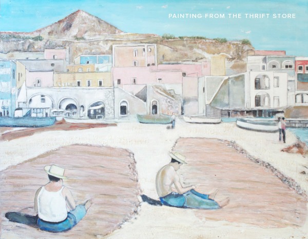 to all those thrift store paintings i’ve admired for their colors and textures – i now have a use for you! brilliant idea for giving unwanted paintings new life…because sometimes just can’t hang everything up. thanks, jordan!