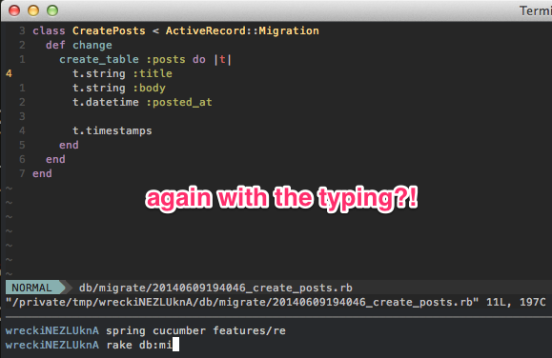 I'm continually finding little commands I want more readily available. After creating a new migration, for instance, I want that thing invoked!