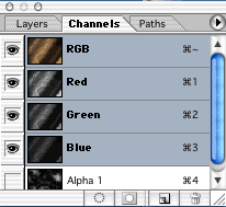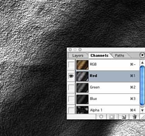 Click on the Channels palette and click on each channel until you find the one with the most contrast (dark to light). In this case it is the Red channel.