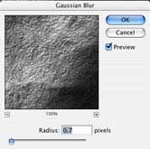 You will now have a new document. This will become our displacement map. Apply a 0.7 Gaussian blur (Filter>blur>Gaussian blur) to lower the sharp detail a bit. This will make for a smoother image in the end.