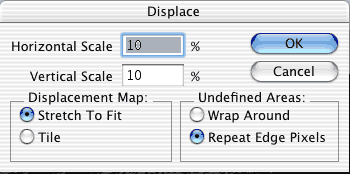 Use the settings shown here when the Displace palette opens.