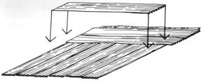 The inside of the triangular stalk was cut or peeled into long strips. These strips were then laid out in two layers, one horizontal and one vertical, and pressed and dried to form a papyrus sheet.