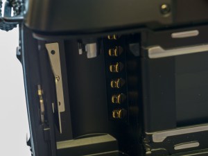 Specifically, for the cartridge it is a grid with Camera Auto Sensing contacts attached to the cartridge itself. It is formatted in two rows, each with a series of six rectangular areas, which are either black or metal electrical contacts. It is these electrical contacts which the camera “reads”. Not all cameras use the second row.