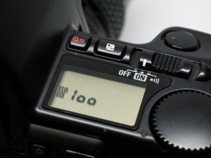 To test out the reading I inserted the cartridge into a Nikon F-801 set to DX mode on the film speed option. Below it shows that the camera recognises this film as ISO 100.