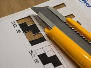 In this example I have filled in the top row with black using the codes to specify an ISO 50. I have replicated the ones on the second row to leave as 36 exposures and the manufacturer’s tolerance. I have also added a little reminder note at the bottom of what this is set to. As my labels can fit two, I always create minimum of two each time.