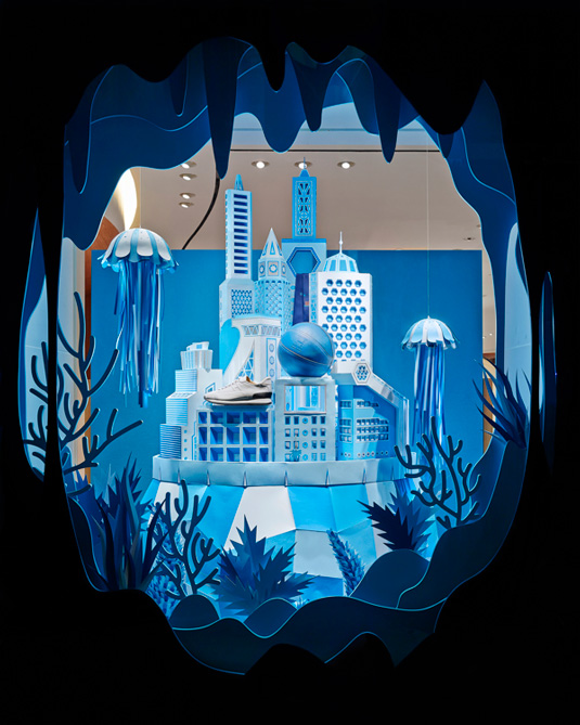 This beautiful, underwater paper world was created graphic design and illustration studio Zim & Zou back in 2013. The project was commissioned by French luxury brand Hermès, who hired the team to design the windows for the re-opening of its store located in Rodeo Drive, Beverly Hills.