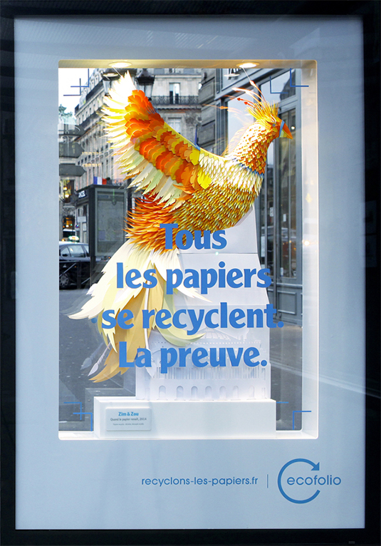 Here, the intricate method of producing a paper art masterpiece has been used to promote recycling in Paris. The French NGO Ecofolio approached design agency June21 to promote the benefits of paper recycling in a national print campaign and they roped in paper art extraordinaires Zim And Zou to create this amazing design.