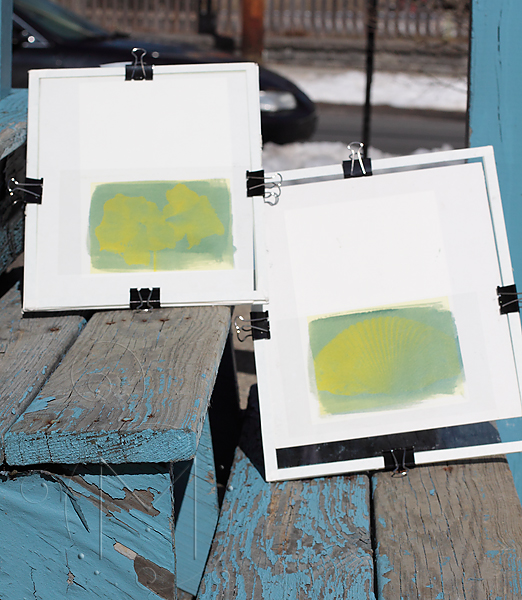 I always test the print time with a simple test strip before I start printing. I know the basic print time for my images – my digital process is streamlined enough that (if prepared correctly) all my prints should need the exact same print time if the conditions are the same. It’s best to print in full sun, but any sort of UV exposure will work. Cloudy weather is a little more unpredictable and will take a minimum of double your sunny exposure time.