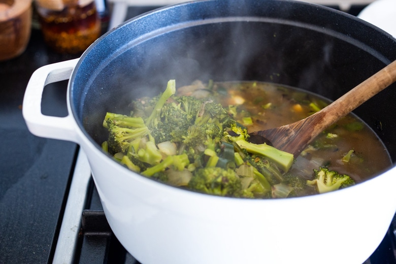Bring to a simmer, then cover and simmer until the broccoli is tender, 10-12 minutes.