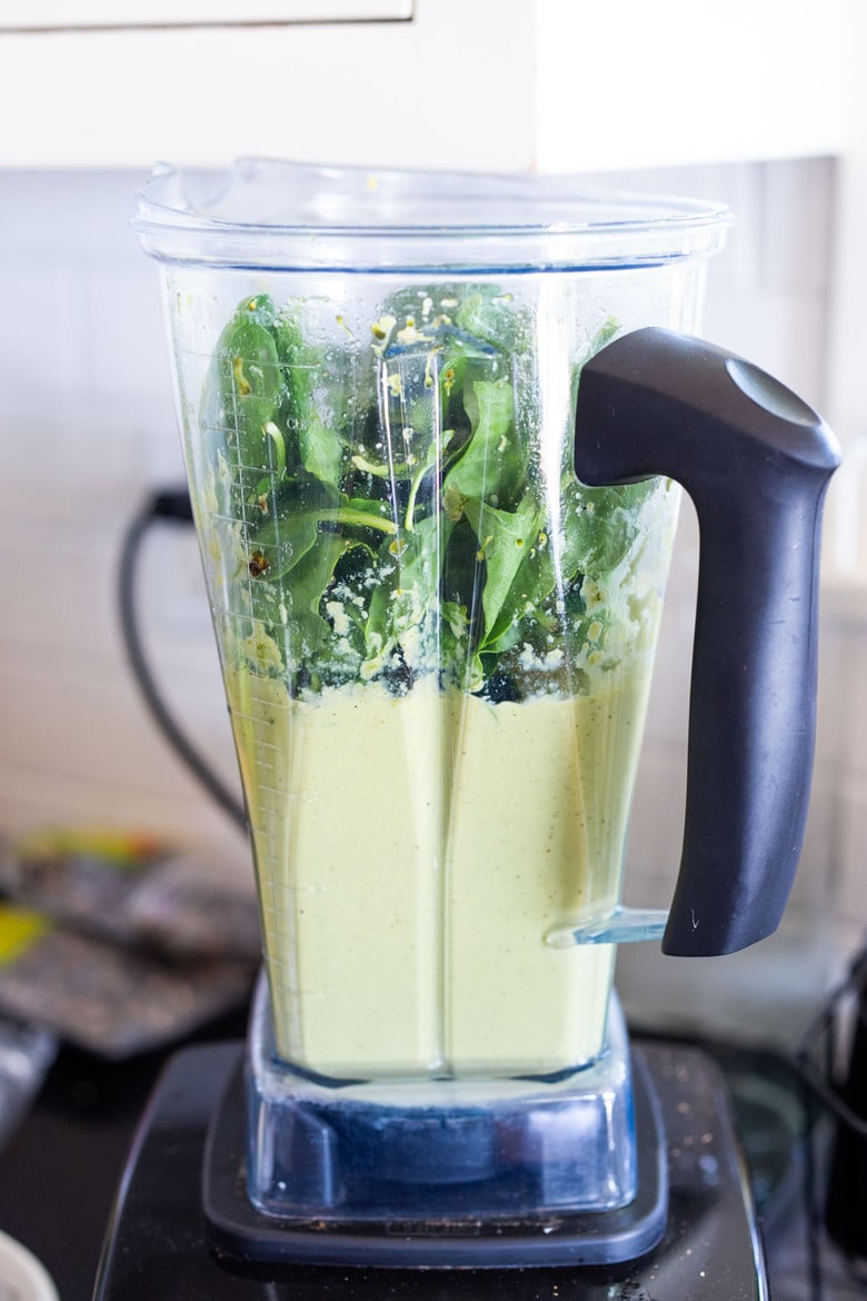 If using a high-powered blender, no need to soak the cashews. Regular Blender? Soak cashews for 4-8 hours (or overnight) in cold water. OR for a quick “cheater” soak, simmer cashews in a little pot of simmering water for 15 mintues to soften, drain before blending.