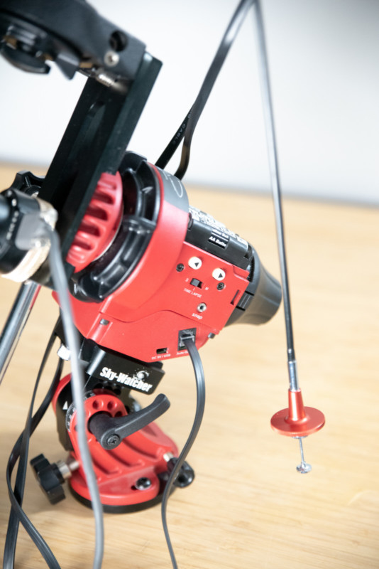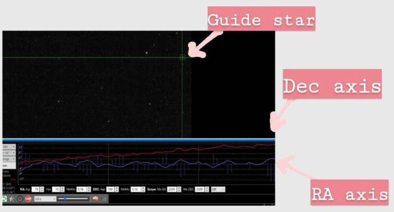 The first step to getting accurate tracking is polar alignment — the axis of the tracker needs be precisely aligned with the Earth’s axis of rotation by pointing it precisely at the North Celestial Pole or South Celestial Pole. The more accurately you can align the tracker, the longer you can expose before seeing star trails. I use a piece of equipment called a QHYCCD PoleMaster to help me get this very accurate. It’s a little camera with dedicated software to monitor stars near the pole and tell you how to adjust your mount to align it.