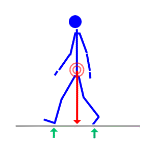 First image shows a exaggerated walking gait. Notice how the hipjoints move because of gravity. The motion of the shoulders usually move in reverse to the hipjoints.