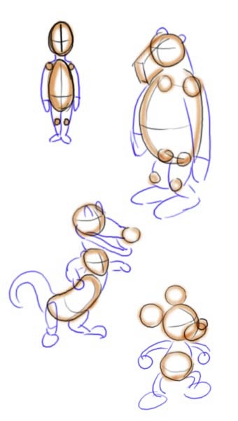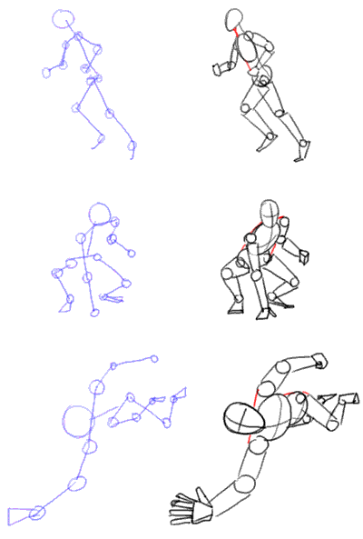 As you can see these sketches resemble the well-known mannikins - wooden puppets made from cylinders and ellipsoids.