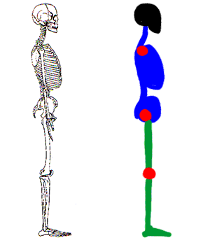 At the basis of the body is the skeleton, of course. In the stickfigure system we already saw something of it. Now we go more into detail. The human body consists of the following characteristic parts: