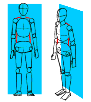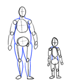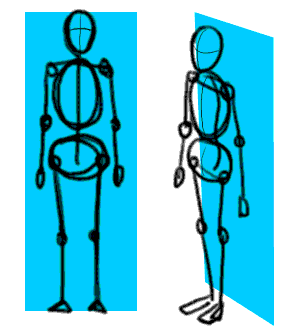 Let's take a look at stickfigures. They vary in detail, usually depending on how accurate you want to compose the body. We'll get to posing later. First we look at proportions of a standing figure.