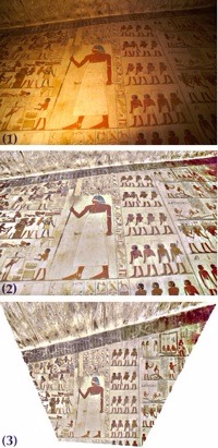 Fig. 1 - The step pyramid Fig. 2 - The pyramids of Giza Fig. 3 - Early hieroglyphic writings from the tomb of Unas Fig. 5 - The royal tombs of, from top to bottom, Tutmosis III, Horamhab and Queen Nefertari (New Kingdom) Fig. 16 - Depictions from tombs of Noblemen in Saqqara (Old Kingdom) Fig. 24 - Depictions from the Nobleman Sennefer (New Kingdom) Fig. 27 - The workmen tombs of, from top to bottom, the Anher-Khau, Pashedu, and Sennedjem (New Kingdom) |