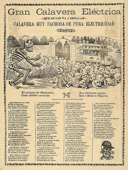 (Would you like one on your wall? We are selling one of Posada’s “calavera” broadsides in our shop, see it here.)