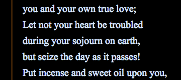 I followed the first link and found a page detailing the three known versions of the Song. I was moved by the first two, but I didn’t feel like I found what I was looking for until I reached this line from the tomb of Inherkhawy: