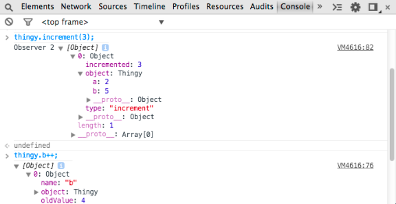 console'Observer 2'Thingyobserve functionthingy callback// Object.observe(obj, callback, optAcceptList)Objectobservethingy callbackThingyINCREMENTThingyMULTIPLYThingyINCREMENT_AND_MULTIPLY'update'Thingyunobserve functionthingy callbackObjectunobservethingy