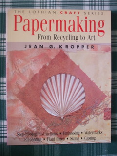 Papermaking – Marion Elliot – New Holland Publishers (UK) 1994 ISBN 1 85238 536 7 – This one is full of colour pictures, gives a basic run through of the process but no real DIY tips on building your own equipment. It is VERY arty and if you want to make cast brooches and a textured-paper wall hanging this one for you, but not so much if you want something on serious papermaking.