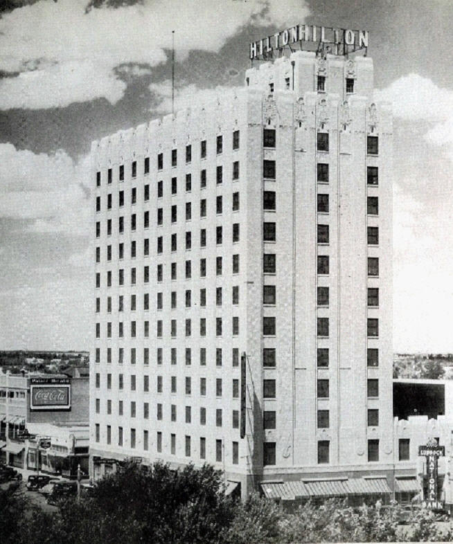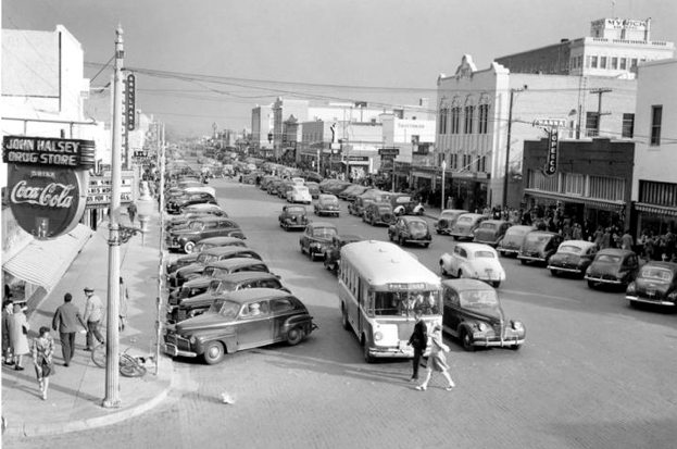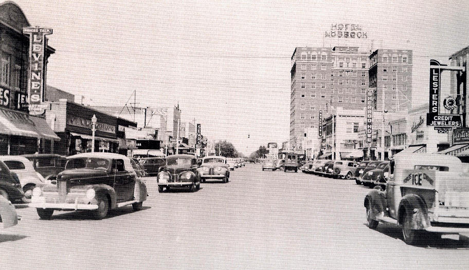 Looking east on Broadway from Lubbock Hotel, about 1942 |