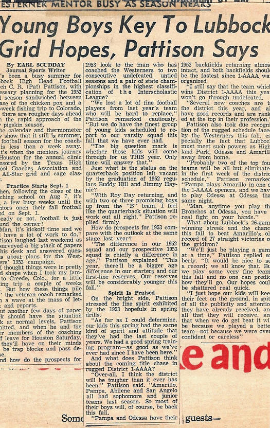 Coach C. R. "Pat" Pattison Head Football Coach 1948-1953