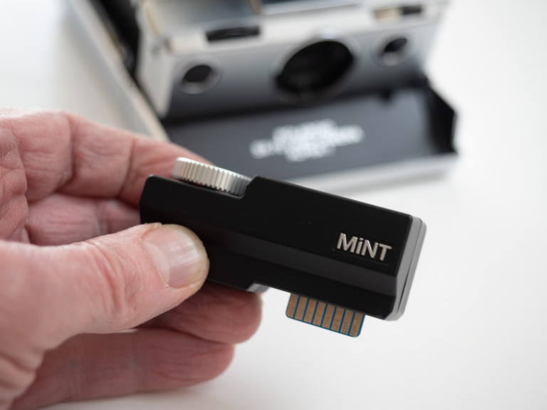 The Time Machine can be detached from the camera. As mentioned, it slots into the original flash socket on the camera. Removed, the camera functions much as it did originally—fully automatic with exposure compensation via the camera’s quirky lighten/darken dial—except it is tuned to use 600 film exclusively. Note that the Time Machine needs to be removed in order to attach a flash, such as MiNT’s Flash Bar 2.