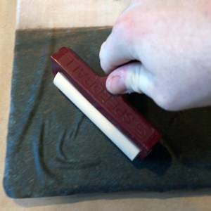 8Once you are finished pressing or rubbing, you will remove the waxy paper, wipe it off for another use with a little water and a rag or paper towel. Let your new print dry face up.