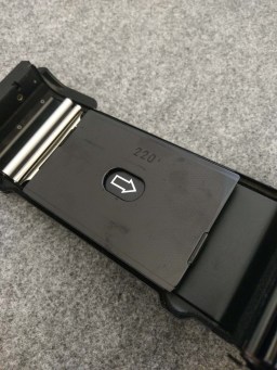 With the film installed, turn your attention to the pressure plate on the inside of the film door. It’ll likely be set to “120” and we want to change it to “220” as per the pictures below. This to account for the film’s lack of backing paper (just like 220 film). Slide the plate to the right, flip it over and put it back.