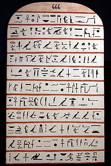 Crowley states that he dined with the Egyptologist Émile Charles Albert Brugsch bey, Curator of the Bulaq Museum to discuss the stele in his charge and to arrange for a facsimile to be made. According to Crowley, Brugsch's French assistant curator translated the hieroglyphic text on the stele.[11] In 1912 a second translation was later made for Crowley by Alan Gardiner and Battiscombe Gunn.