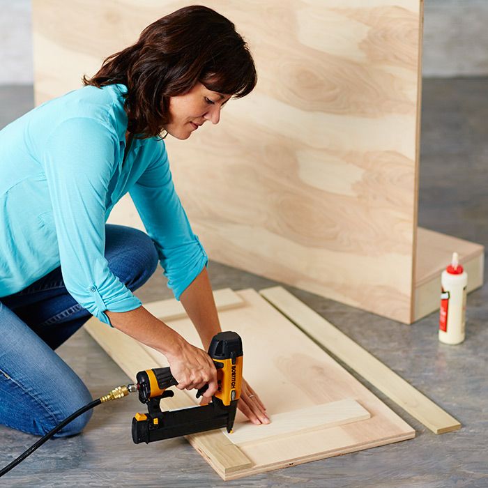 Cut 1/2-inch-thick boards for the end stiles (F) -- the vertical members of a panel -- to match the height of the ends (Project Diagram, Drawing 2). Apply glue to one stile and nail it to the plywood so the edges and the top and bottom are flush. Next cut the two end rails (G) -- the horizontal members of a panel -- to length. Test the length by placing the remaining stile against the end of the rails. If the stile overhangs the plywood, the rails are too long and need to be trimmed.