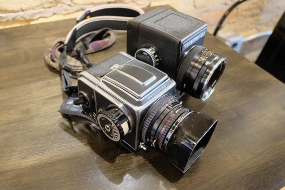 I’ve had a 500CM and used it quite a bit. Found holding it strange after a TLR. Frightened of dropping it. Very surprised at how noisy it was when the shutter fired. The Rolleis are whispering when I press the cable release. One advantage of the Hasselblad is the exchangeable backs. I could have one on the camera, one in jeans pocket and a roll of film in shirt pocket. Thus the potential for 36 exposures just like my Leicaflex.
