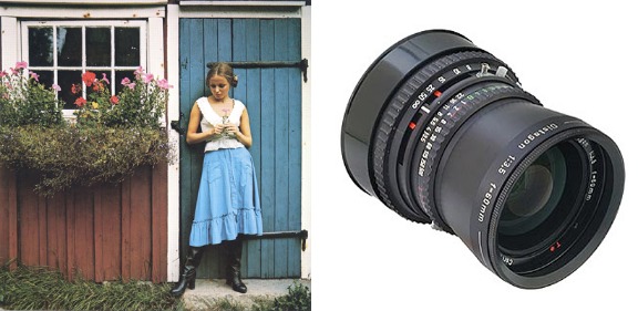 The 60mm f/3.5 Distagon fills the gap between the 50mm and 80mm lenses. The object field of the 60mm lens is 1.8 times larger than the field of the standard 80mm Planar lens, but pictures taken with it do not show an exaggerated wide-angle perspective. These properties are a real boon for interior subjects where appearance must be reproduced as natural as possible. The 60mm Distagon can also be used for group shots at relatively short lens-to-object distances avoiding perspective distortion of heads near the edges of the field. The 60mm f/3.5 Distagon also comes into its own in landscape work, since the lens makes it easy to emphasize a main subject in the foreground. Not to mention the advantage to fashion and advertising photographers of 1.8 times more depth-of-field than you get with the 80mm Planar.