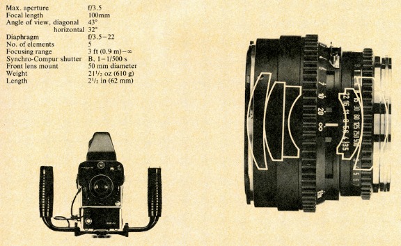 The 100mm Planar is a lens designed to uncompromising optical standards. It even surpasses the standard 80mm Planar in resolution if both lenses are used at full aperture or stopped down at f/4 or f/5.6. Its properties are shown to best advantage at long lens-to-object distances.