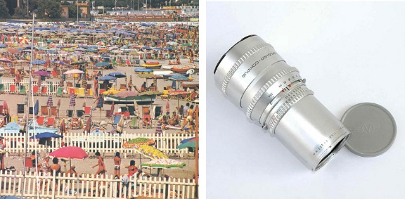 The long focal length also compresses perspective. This effect is naturally most obvious with the 500mm Tele-Tessar whose diagonal angle of view is only 9° (6.5° horizontal). Images acquire a special atmosphere, an effect employed by many advertising photographers searching for ways to attain new visual results. For example, a row of houses looks tightly packed together when photographed with this lens.