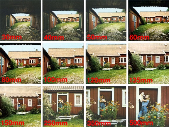 This series below of photographs shows the change in perspective obtained when the main subject in all the photographs has the same size. The Camera was successively backed off after every change of lens. The main subject remained stationary throughout.