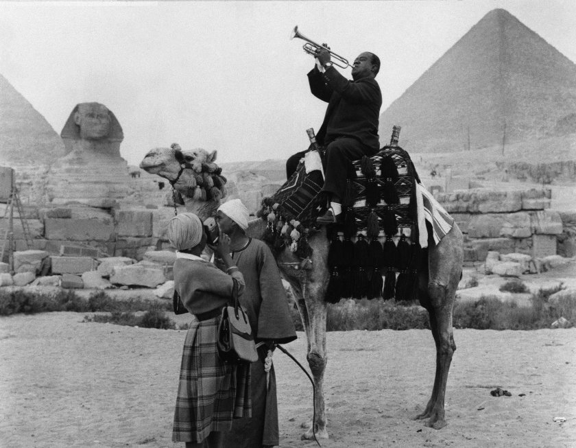 3. Louis Armstrong plays near the pyramids, 1961.