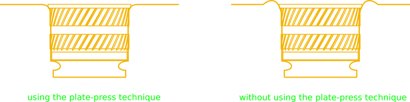 I imagine that tweaking both our iron temperature and insertion speed might reduce or eliminate this bulging effect if we practice installing these inserts under various conditions. But that hypothetical need for practice is exactly what makes the plate-press technique so valuable. Simply put, the plate-press technique gives us consistent results without the need for robot-levels-of-precision. We simply “smoosh” the insert into its final place and be done with it. The result is a flush insert with little effort and no practice. Admittedly, this technique is not how the industry folk do it for mass-production, but it sure is consistent — a hack even.